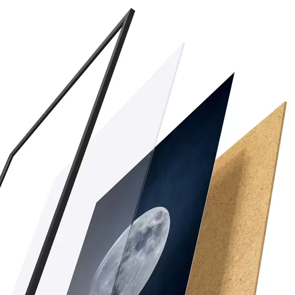 Le poster se compose d'un cadre, d'un plexiglas, d'une image imprimée et d'un support en aggloméré. Le poster peut être immédiatement accroché au mur grâce aux fixations au dos.