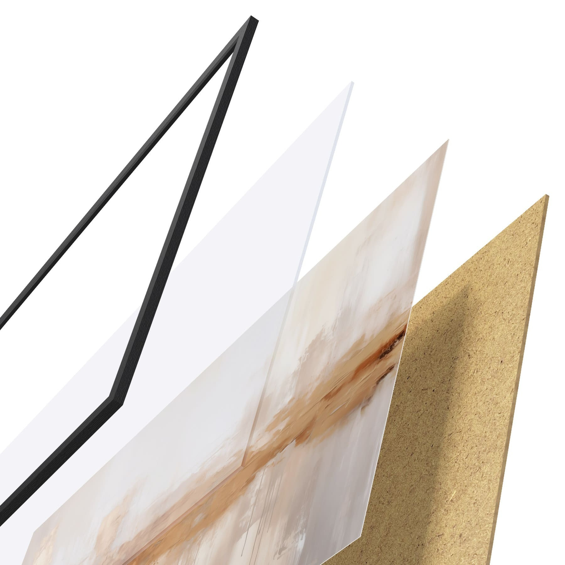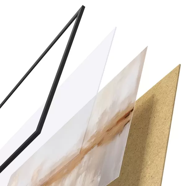 Le poster se compose d'un cadre, d'un plexiglas, d'une image imprimée et d'un support en aggloméré. Le poster peut être immédiatement accroché au mur grâce aux fixations au dos.