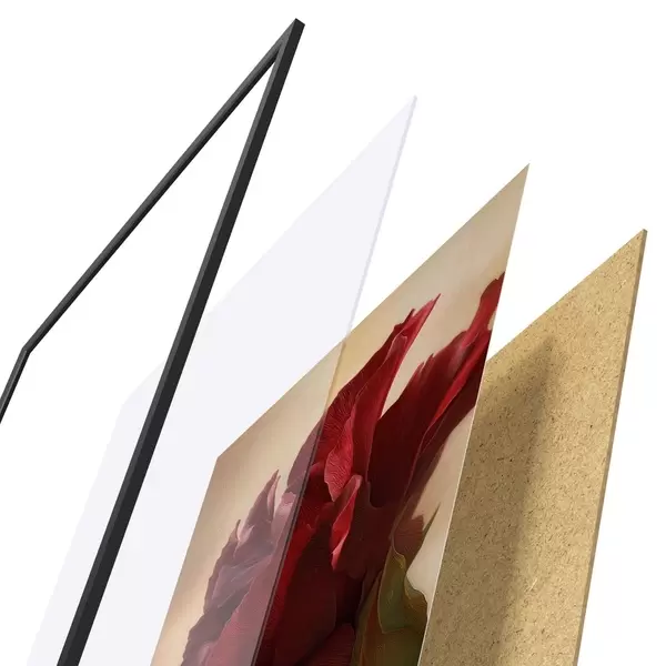 Le poster se compose d'un cadre, d'un plexiglas, d'une image imprimée et d'un support en aggloméré. Le poster peut être immédiatement accroché au mur grâce aux fixations au dos.