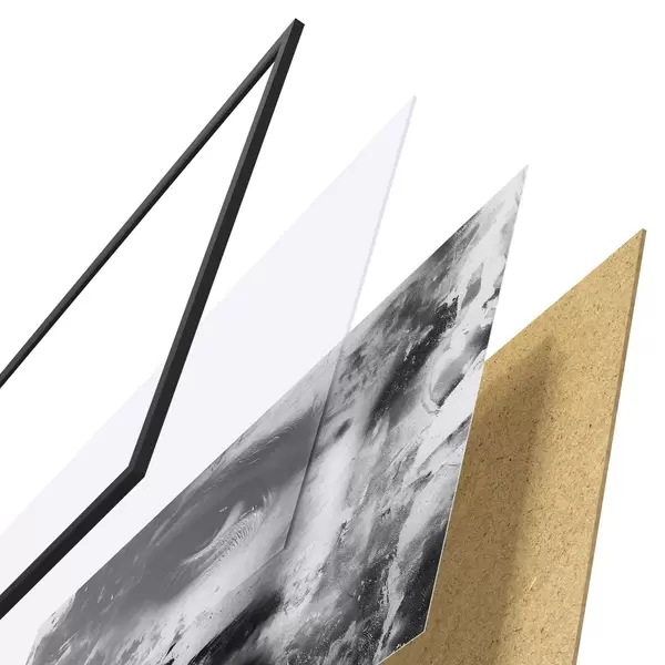 Le poster se compose d'un cadre, d'un plexiglas, d'une image imprimée et d'un support en aggloméré. Le poster peut être immédiatement accroché au mur grâce aux fixations au dos.