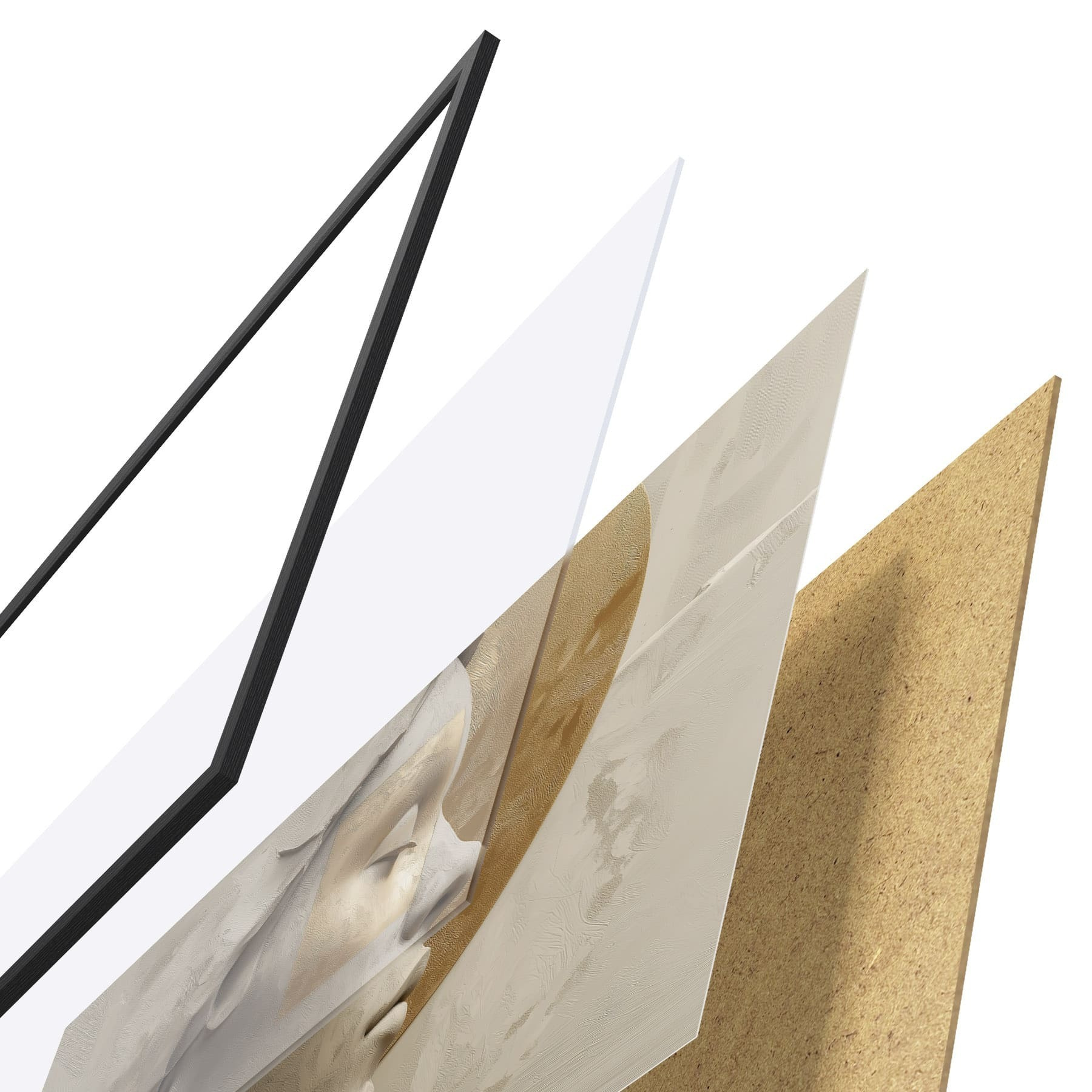 Le poster se compose d'un cadre, d'un plexiglas, d'une image imprimée et d'un support en aggloméré. Le poster peut être immédiatement accroché au mur grâce aux fixations au dos.