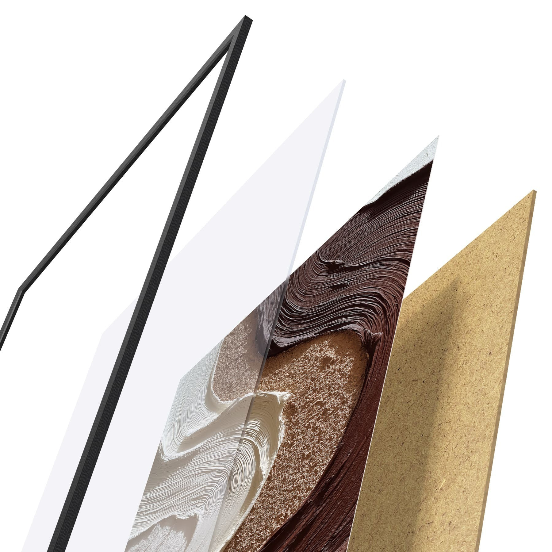 Le poster se compose d'un cadre, d'un plexiglas, d'une image imprimée et d'un support en aggloméré. Le poster peut être immédiatement accroché au mur grâce aux fixations au dos.
