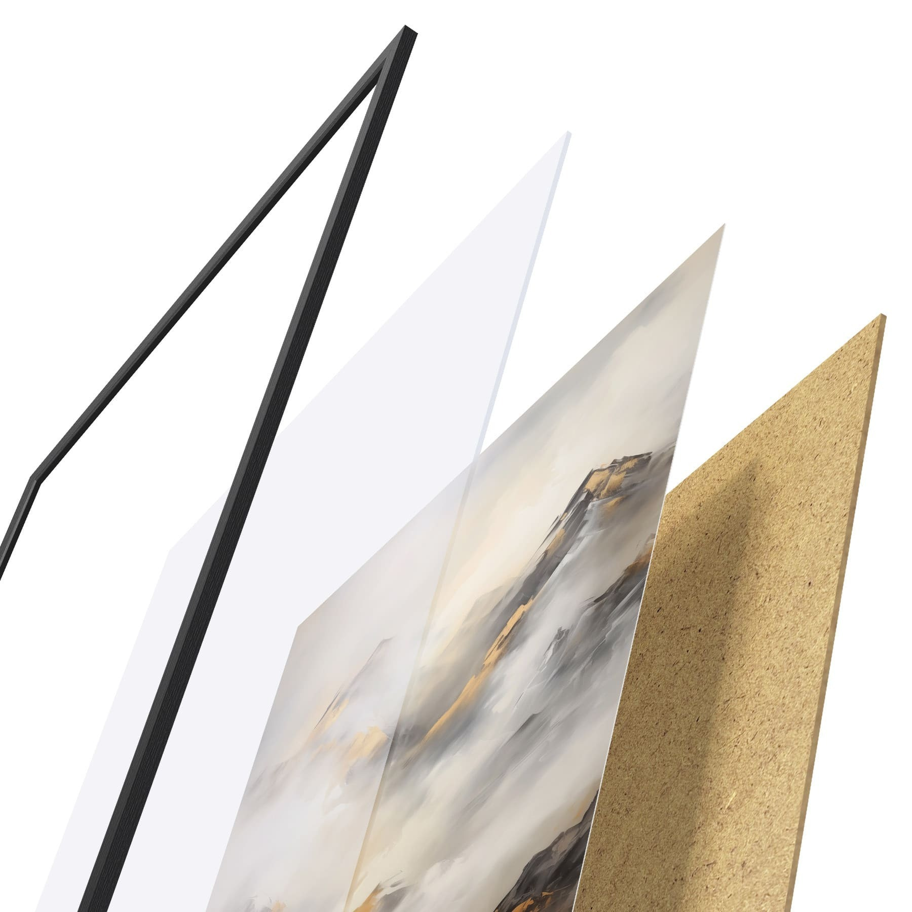 Le poster se compose d'un cadre, d'un plexiglas, d'une image imprimée et d'un support en aggloméré. Le poster peut être immédiatement accroché au mur grâce aux fixations au dos.