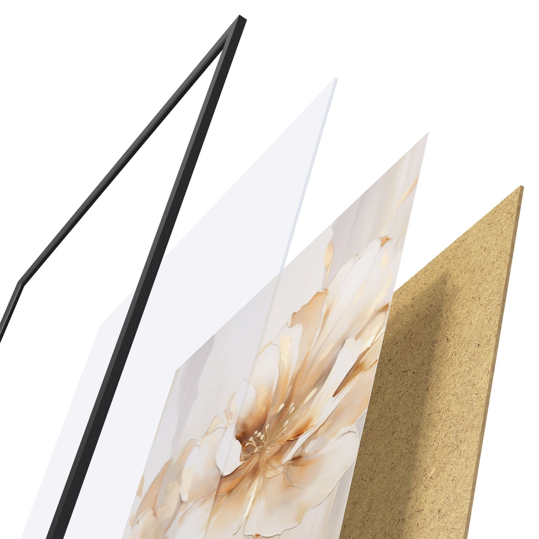 Le poster se compose d'un cadre, d'un plexiglas, d'une image imprimée et d'un support en aggloméré. Le poster peut être immédiatement accroché au mur grâce aux fixations au dos.