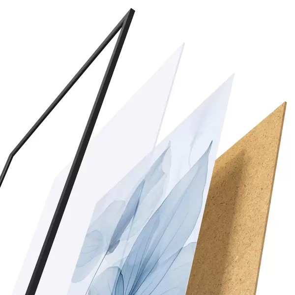 Le poster se compose d'un cadre, d'un plexiglas, d'une image imprimée et d'un support en aggloméré. Le poster peut être immédiatement accroché au mur grâce aux fixations au dos.