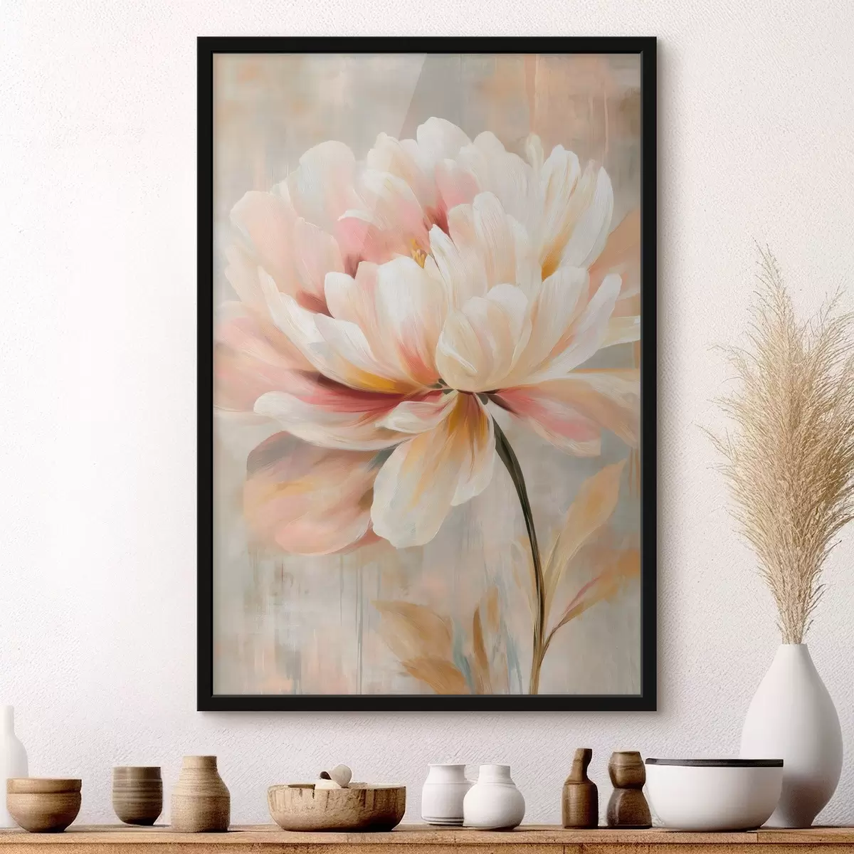 Affiche Une pivoine délicate aux tons pastel, dans un style peinture à l'huile f48183