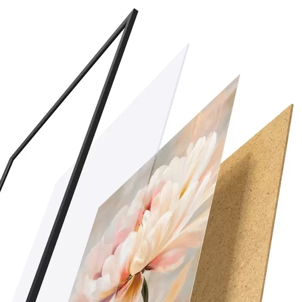 Le poster se compose d'un cadre, d'un plexiglas, d'une image imprimée et d'un support en aggloméré. Le poster peut être immédiatement accroché au mur grâce aux fixations au dos.