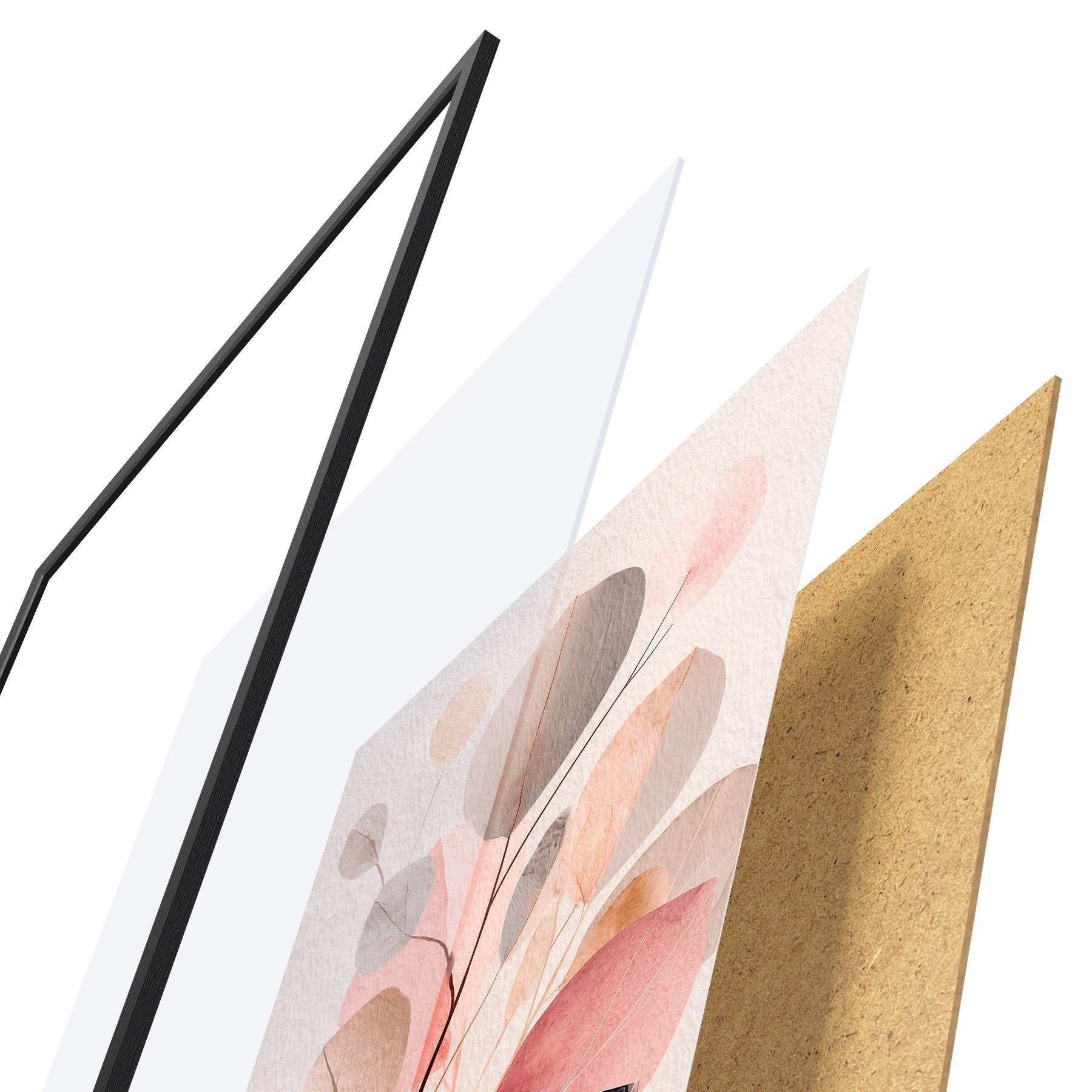 Le poster se compose d'un cadre, d'un plexiglas, d'une image imprimée et d'un support en aggloméré. Le poster peut être immédiatement accroché au mur grâce aux fixations au dos.
