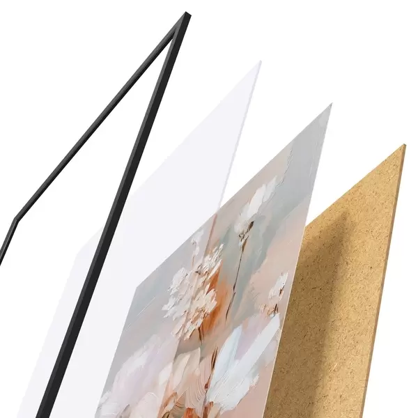 Le poster se compose d'un cadre, d'un plexiglas, d'une image imprimée et d'un support en aggloméré. Le poster peut être immédiatement accroché au mur grâce aux fixations au dos.