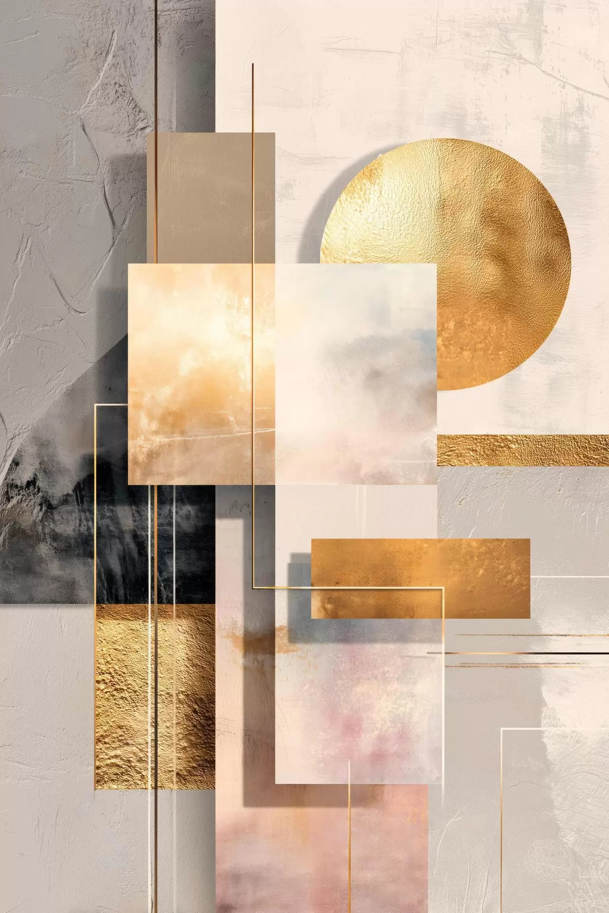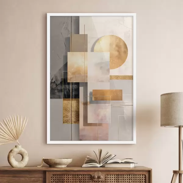 Affiche Composition décorative composée de rectangles et d'un cercle dans une palette de tons beiges et bruns chauds Non f48196