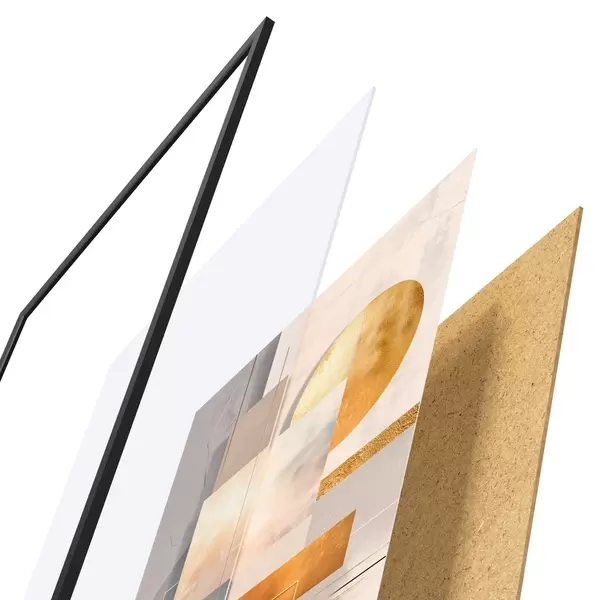 Le poster se compose d'un cadre, d'un plexiglas, d'une image imprimée et d'un support en aggloméré. Le poster peut être immédiatement accroché au mur grâce aux fixations au dos.