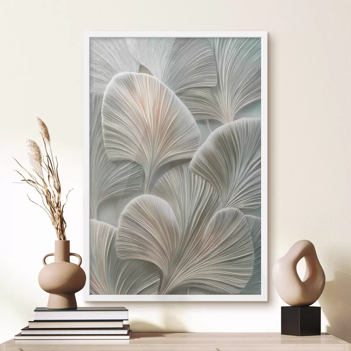 Affiche Illustration artistique représentant des feuilles en relief, dans un style contemporain de bas-relief f48210