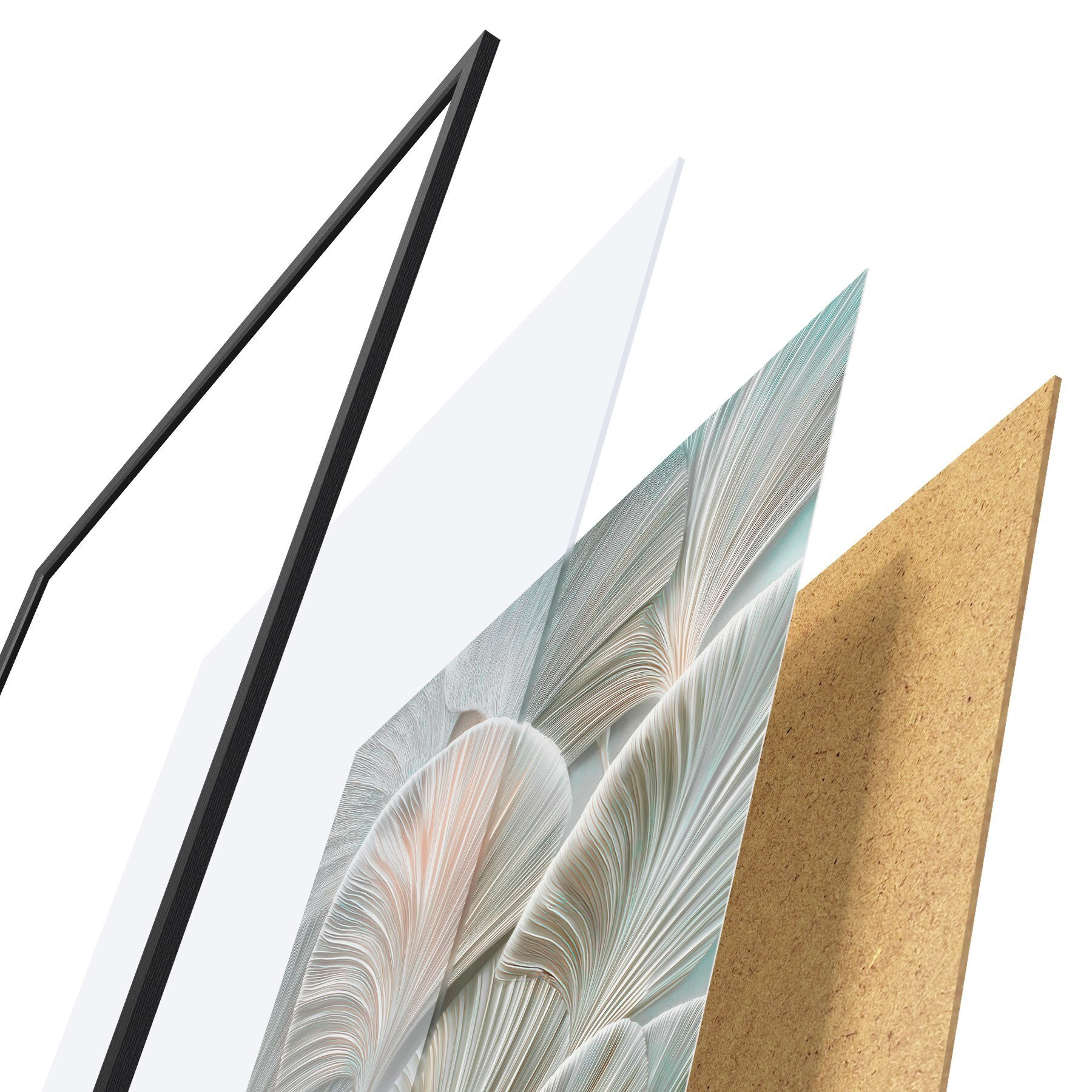 Le poster se compose d'un cadre, d'un plexiglas, d'une image imprimée et d'un support en aggloméré. Le poster peut être immédiatement accroché au mur grâce aux fixations au dos.