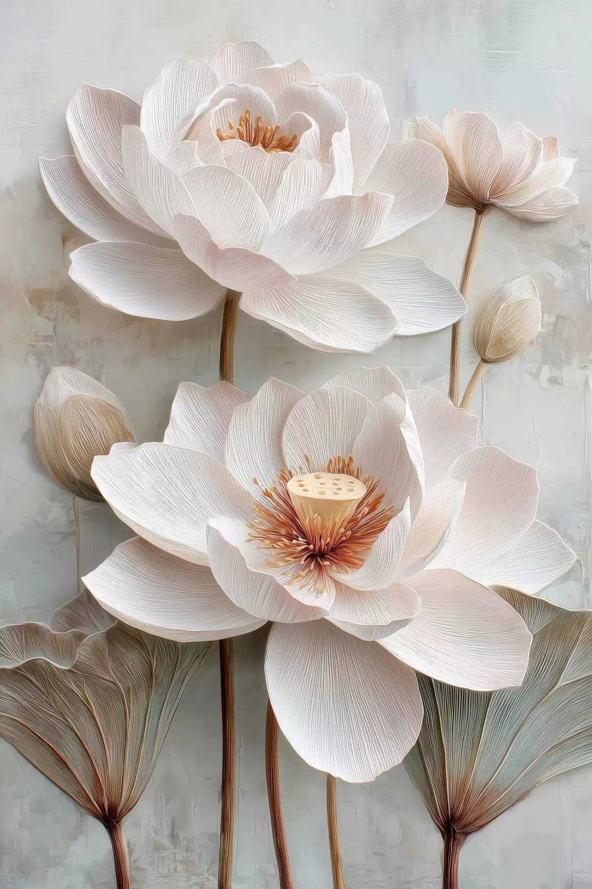 Affiche Des fleurs de lotus aux teintes pastel claires, dans un style de peinture à l'huile f48213