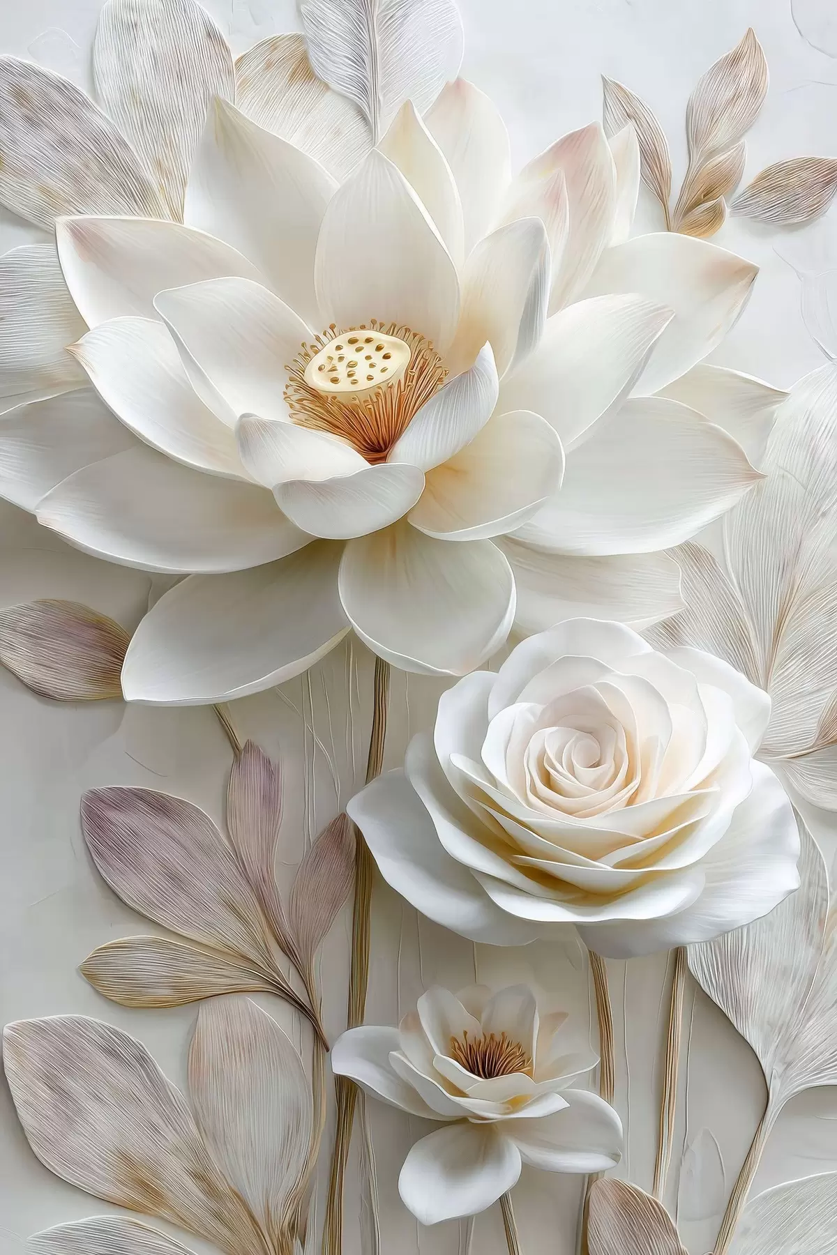Affiche Des fleurs de lotus et de rose dans des tons crème clair, dans un style de peinture à l'huile f48214