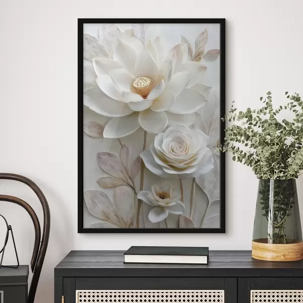 Affiche Des fleurs de lotus et de rose dans des tons crème clair, dans un style de peinture à l'huile Non f48214