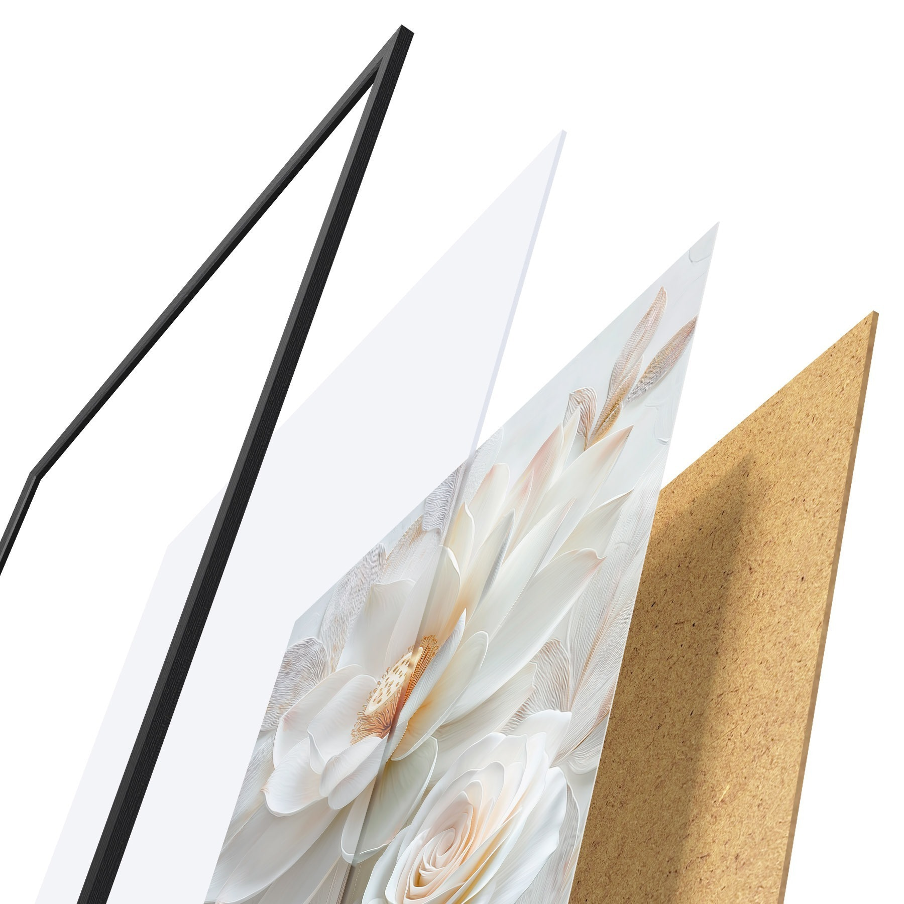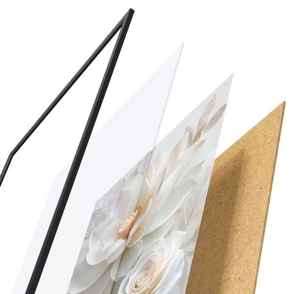 Le poster se compose d'un cadre, d'un plexiglas, d'une image imprimée et d'un support en aggloméré. Le poster peut être immédiatement accroché au mur grâce aux fixations au dos.