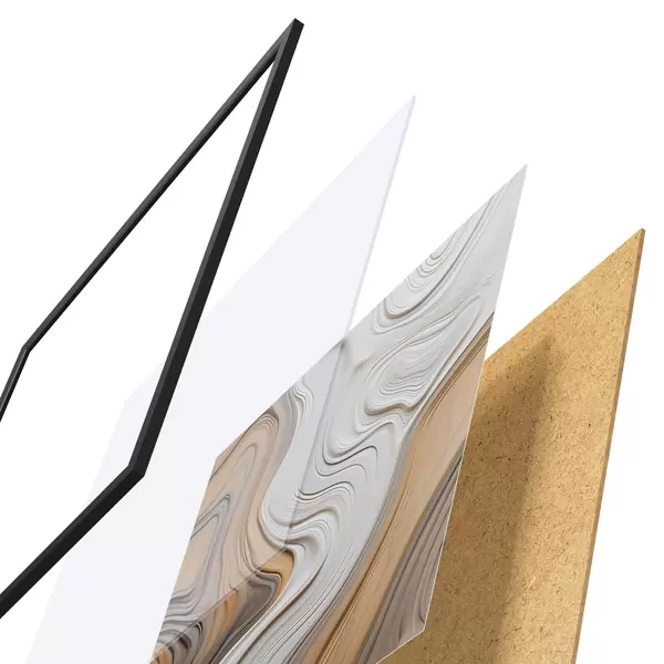 Le poster se compose d'un cadre, d'un plexiglas, d'une image imprimée et d'un support en aggloméré. Le poster peut être immédiatement accroché au mur grâce aux fixations au dos.