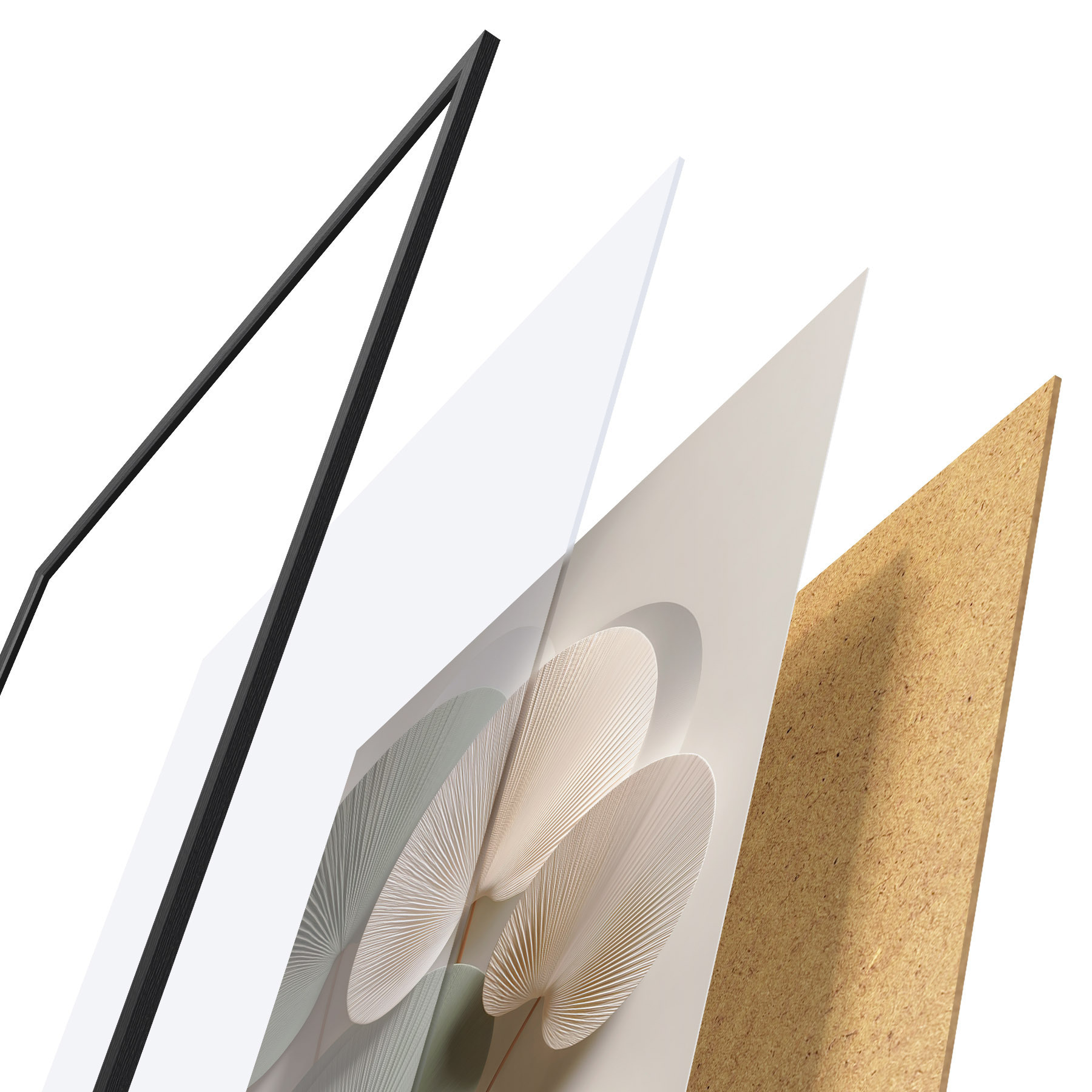 Le poster se compose d'un cadre, d'un plexiglas, d'une image imprimée et d'un support en aggloméré. Le poster peut être immédiatement accroché au mur grâce aux fixations au dos.