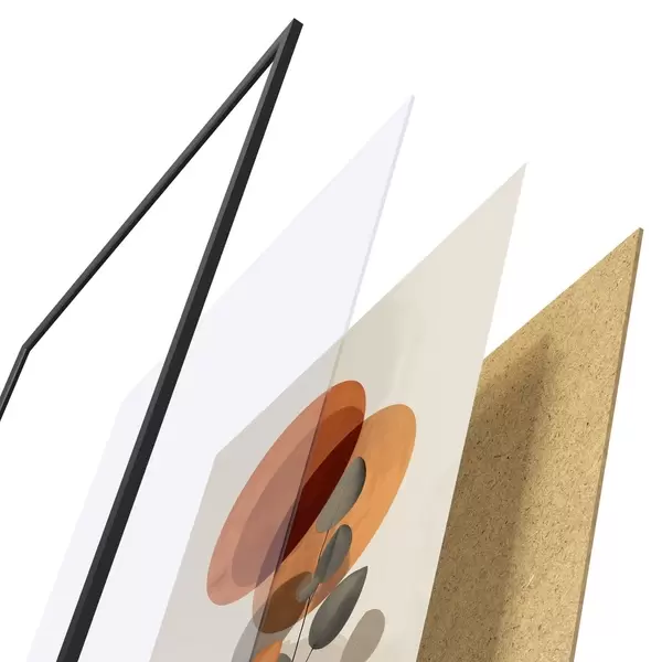 Le poster se compose d'un cadre, d'un plexiglas, d'une image imprimée et d'un support en aggloméré. Le poster peut être immédiatement accroché au mur grâce aux fixations au dos.