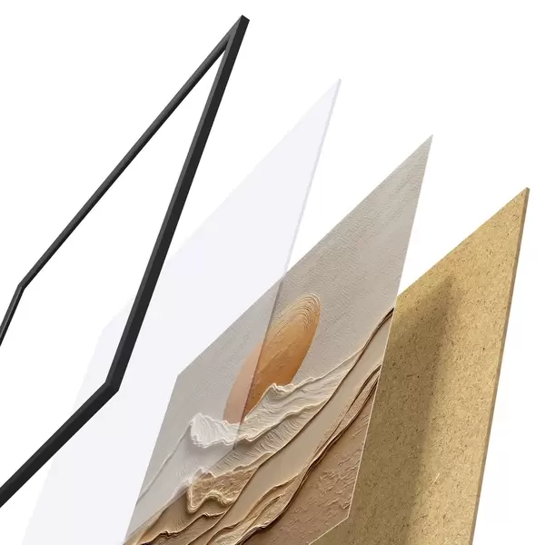 Le poster se compose d'un cadre, d'un plexiglas, d'une image imprimée et d'un support en aggloméré. Le poster peut être immédiatement accroché au mur grâce aux fixations au dos.