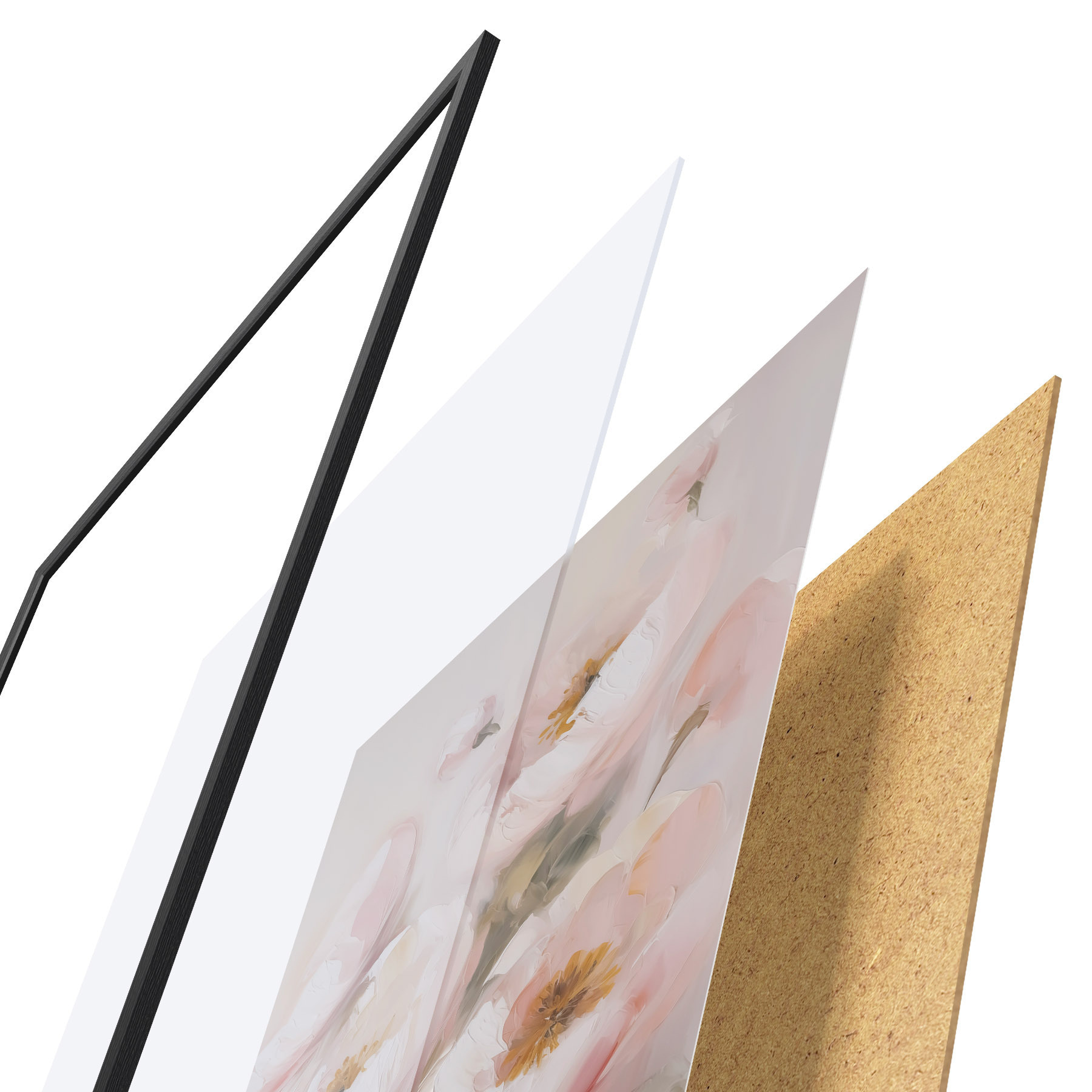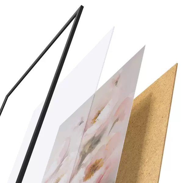 Le poster se compose d'un cadre, d'un plexiglas, d'une image imprimée et d'un support en aggloméré. Le poster peut être immédiatement accroché au mur grâce aux fixations au dos.