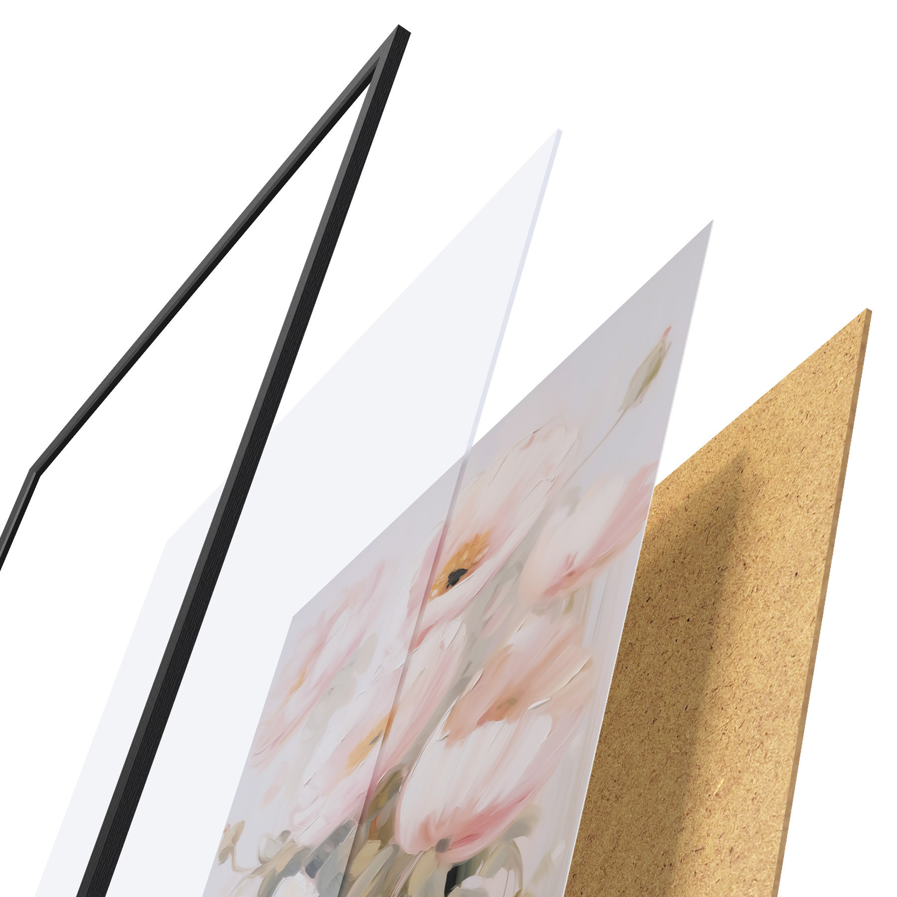 Le poster se compose d'un cadre, d'un plexiglas, d'une image imprimée et d'un support en aggloméré. Le poster peut être immédiatement accroché au mur grâce aux fixations au dos.
