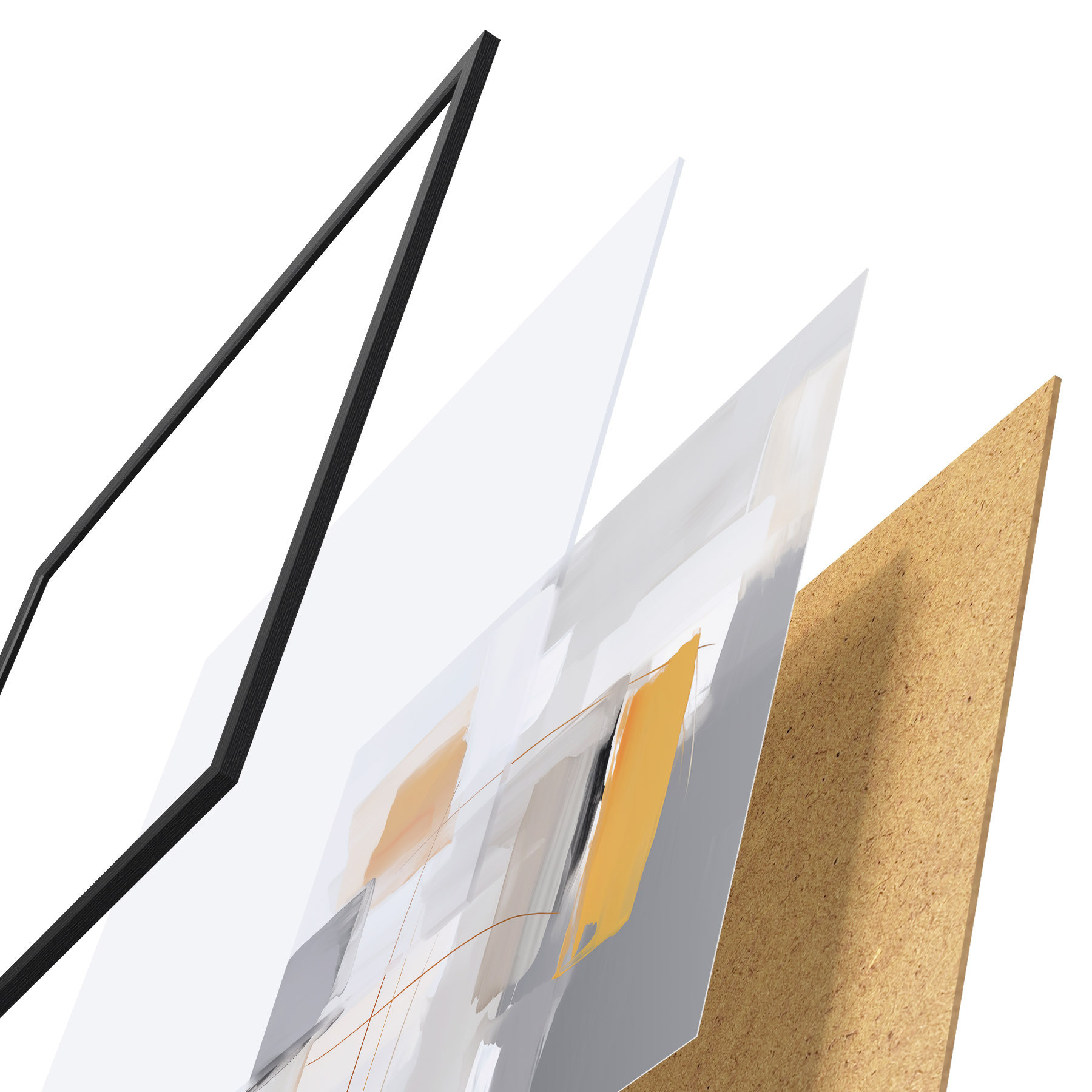 Le poster se compose d'un cadre, d'un plexiglas, d'une image imprimée et d'un support en aggloméré. Le poster peut être immédiatement accroché au mur grâce aux fixations au dos.