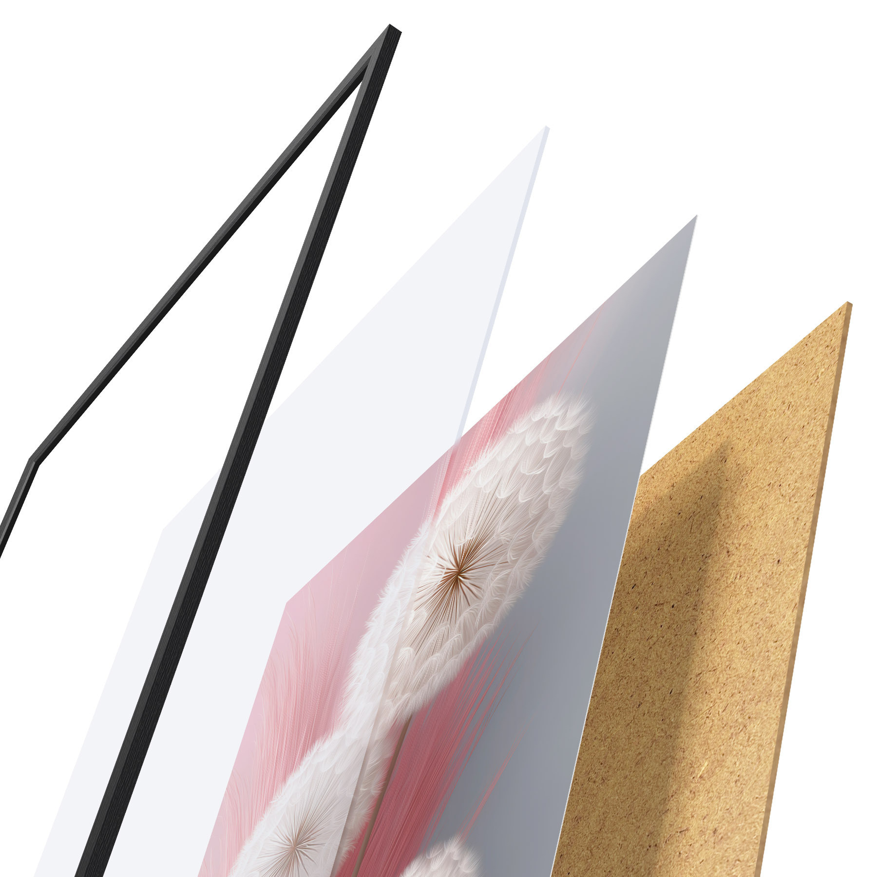 Le poster se compose d'un cadre, d'un plexiglas, d'une image imprimée et d'un support en aggloméré. Le poster peut être immédiatement accroché au mur grâce aux fixations au dos.