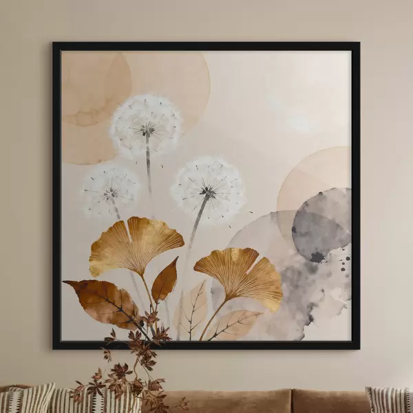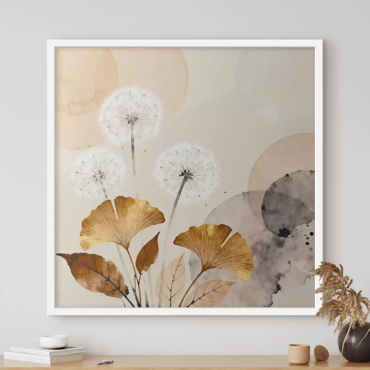 Affiche Désignation : pissenlits et feuilles de ginkgo f48279