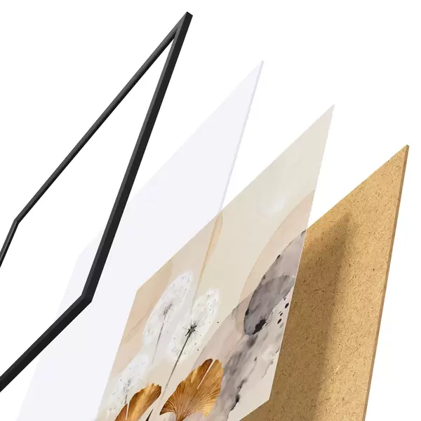 Le poster se compose d'un cadre, d'un plexiglas, d'une image imprimée et d'un support en aggloméré. Le poster peut être immédiatement accroché au mur grâce aux fixations au dos.