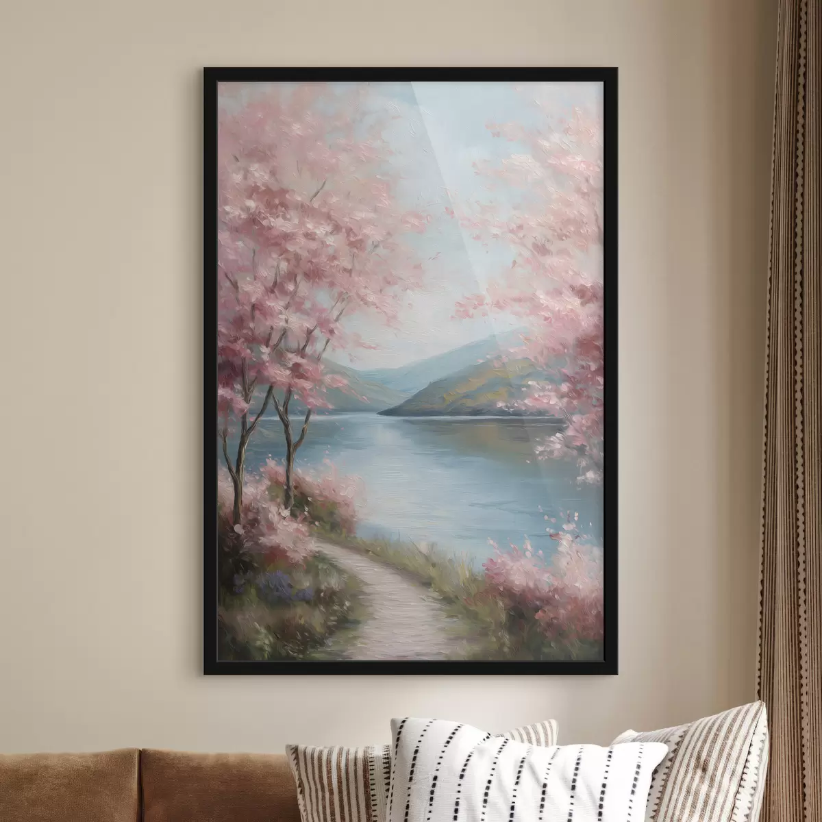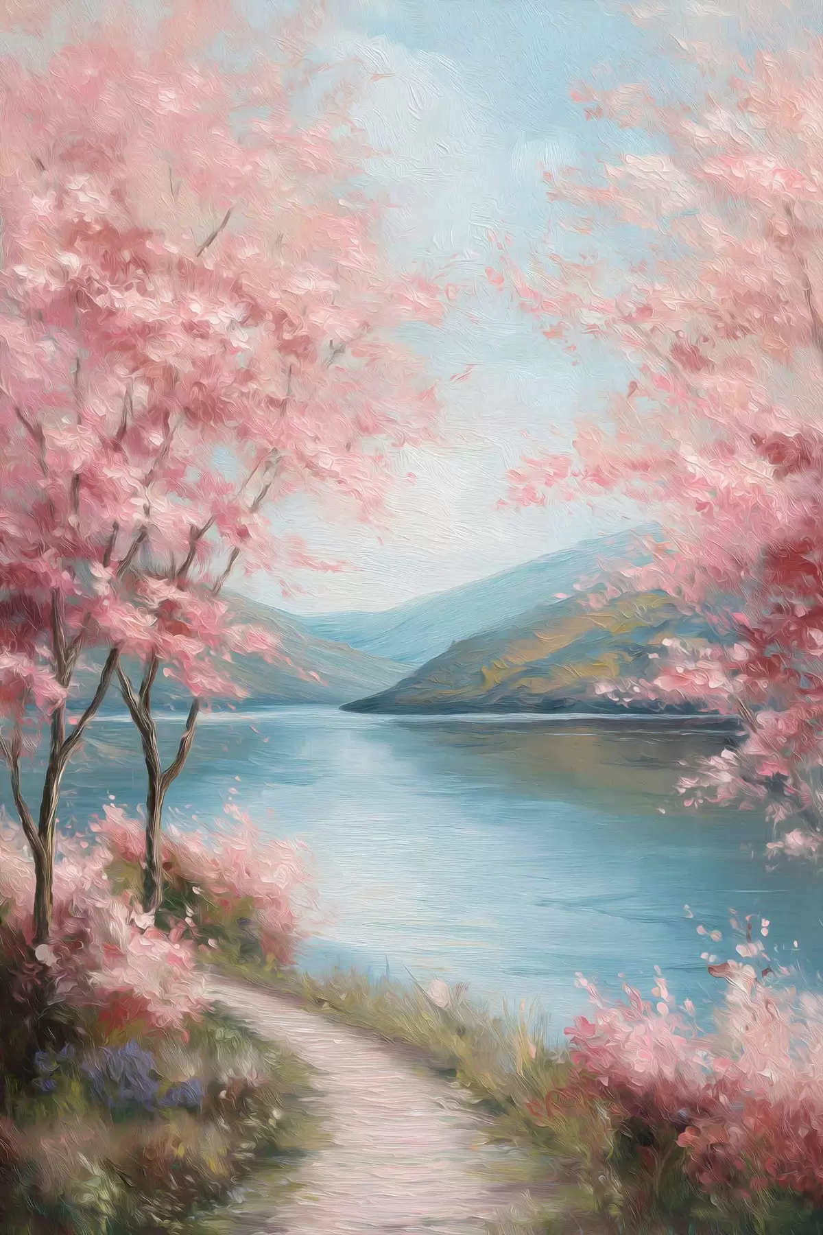 Affiche paysage avec des arbres roses dans un style huile Non f48290