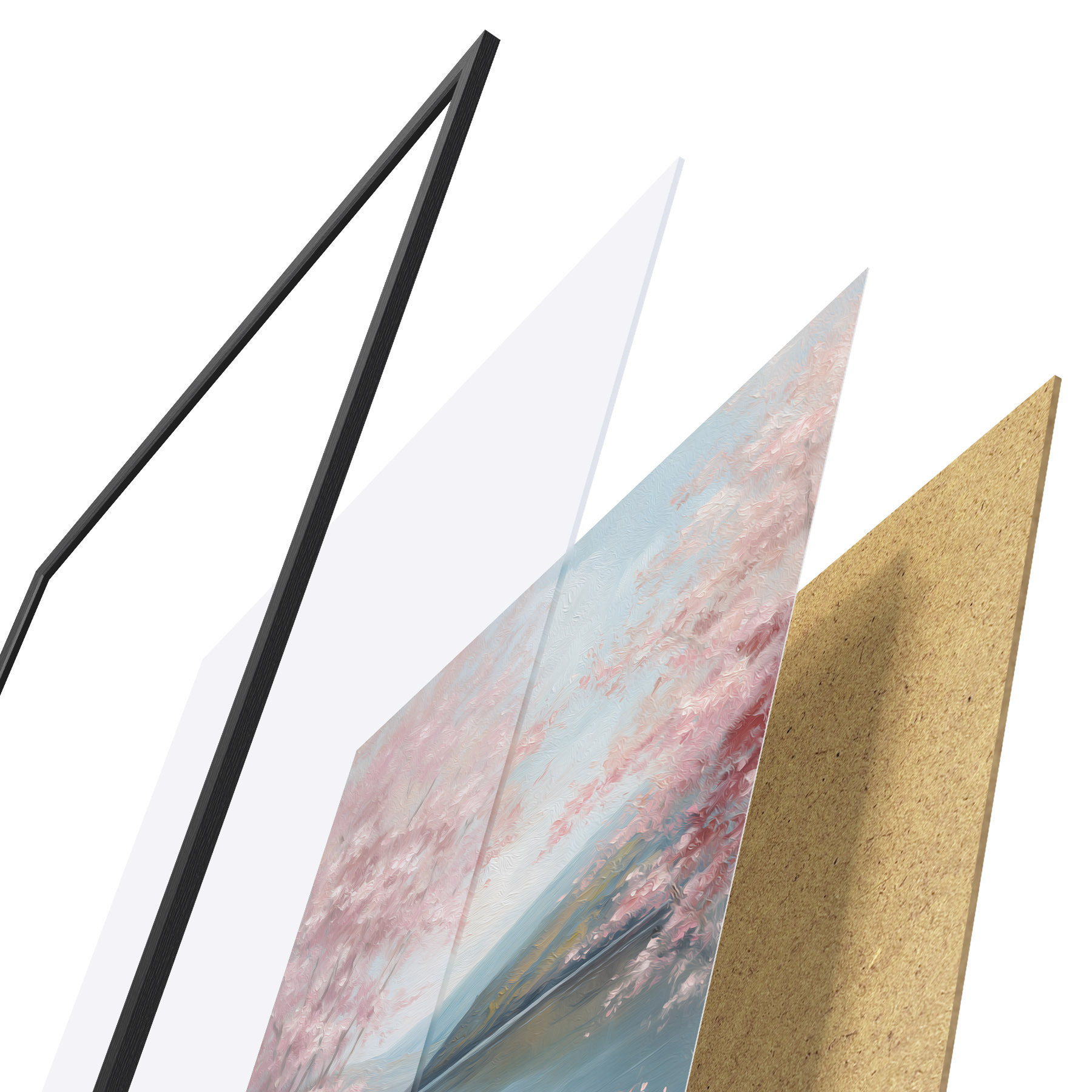Le poster se compose d'un cadre, d'un plexiglas, d'une image imprimée et d'un support en aggloméré. Le poster peut être immédiatement accroché au mur grâce aux fixations au dos.
