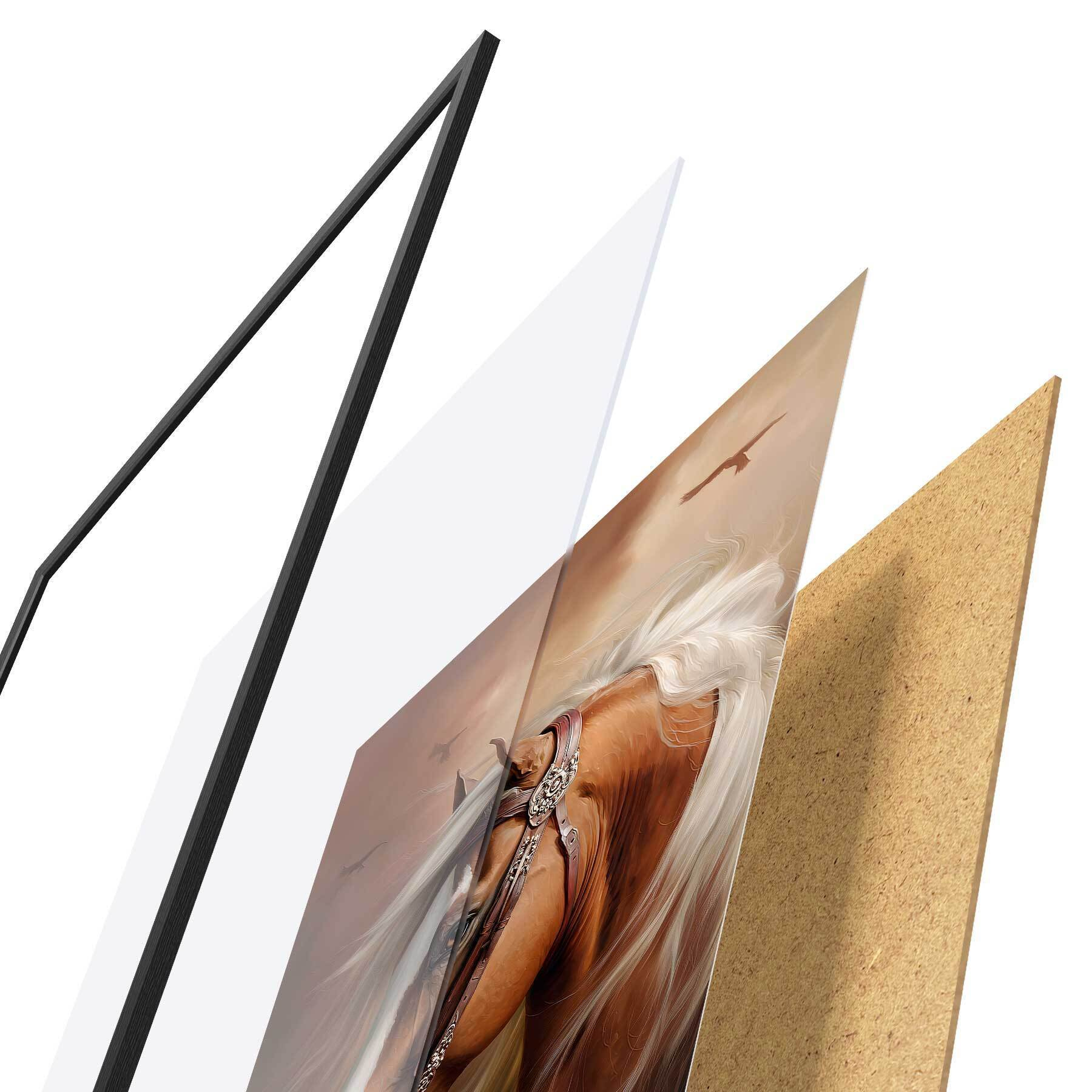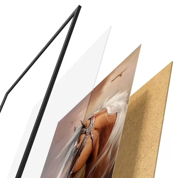 Le poster se compose d'un cadre, d'un plexiglas, d'une image imprimée et d'un support en aggloméré. Le poster peut être immédiatement accroché au mur grâce aux fixations au dos.