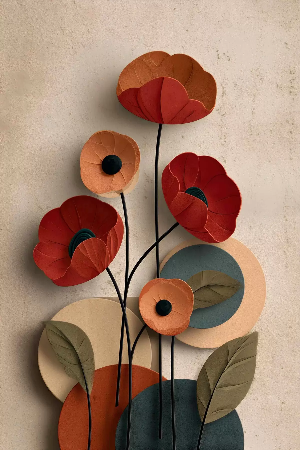 Affiche fleurs dans un style simplifié avec un effet de volume Non f48294