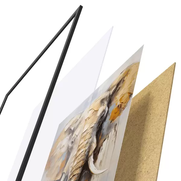 Le poster se compose d'un cadre, d'un plexiglas, d'une image imprimée et d'un support en aggloméré. Le poster peut être immédiatement accroché au mur grâce aux fixations au dos.