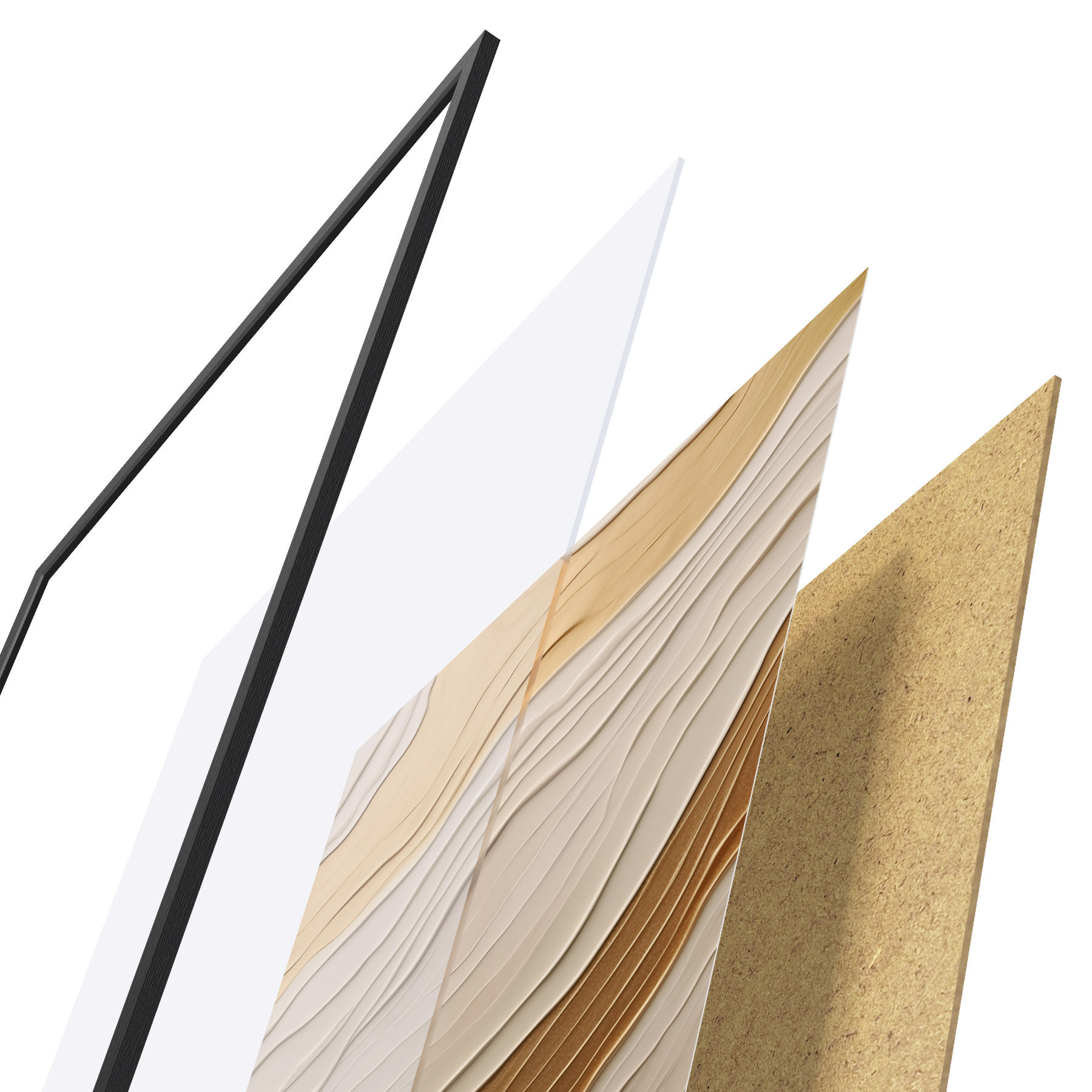 Le poster se compose d'un cadre, d'un plexiglas, d'une image imprimée et d'un support en aggloméré. Le poster peut être immédiatement accroché au mur grâce aux fixations au dos.