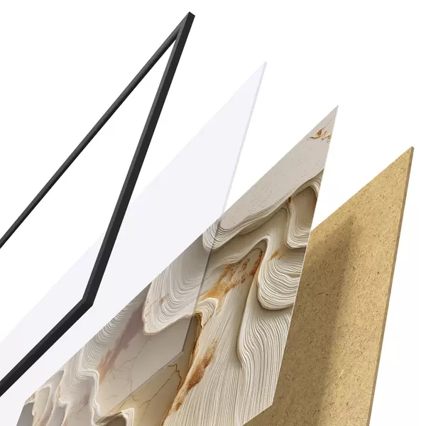 Le poster se compose d'un cadre, d'un plexiglas, d'une image imprimée et d'un support en aggloméré. Le poster peut être immédiatement accroché au mur grâce aux fixations au dos.