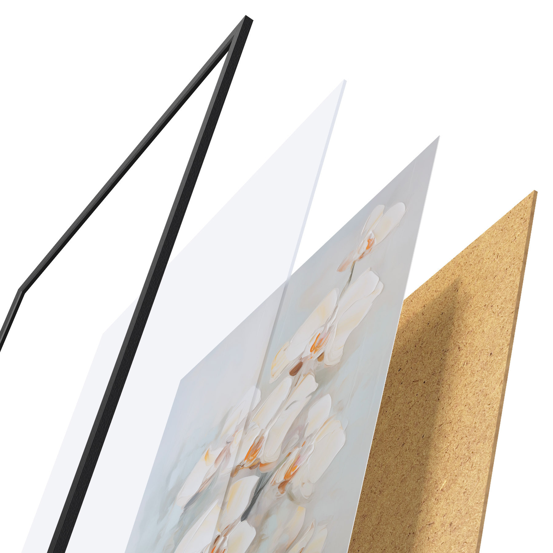 Le poster se compose d'un cadre, d'un plexiglas, d'une image imprimée et d'un support en aggloméré. Le poster peut être immédiatement accroché au mur grâce aux fixations au dos.