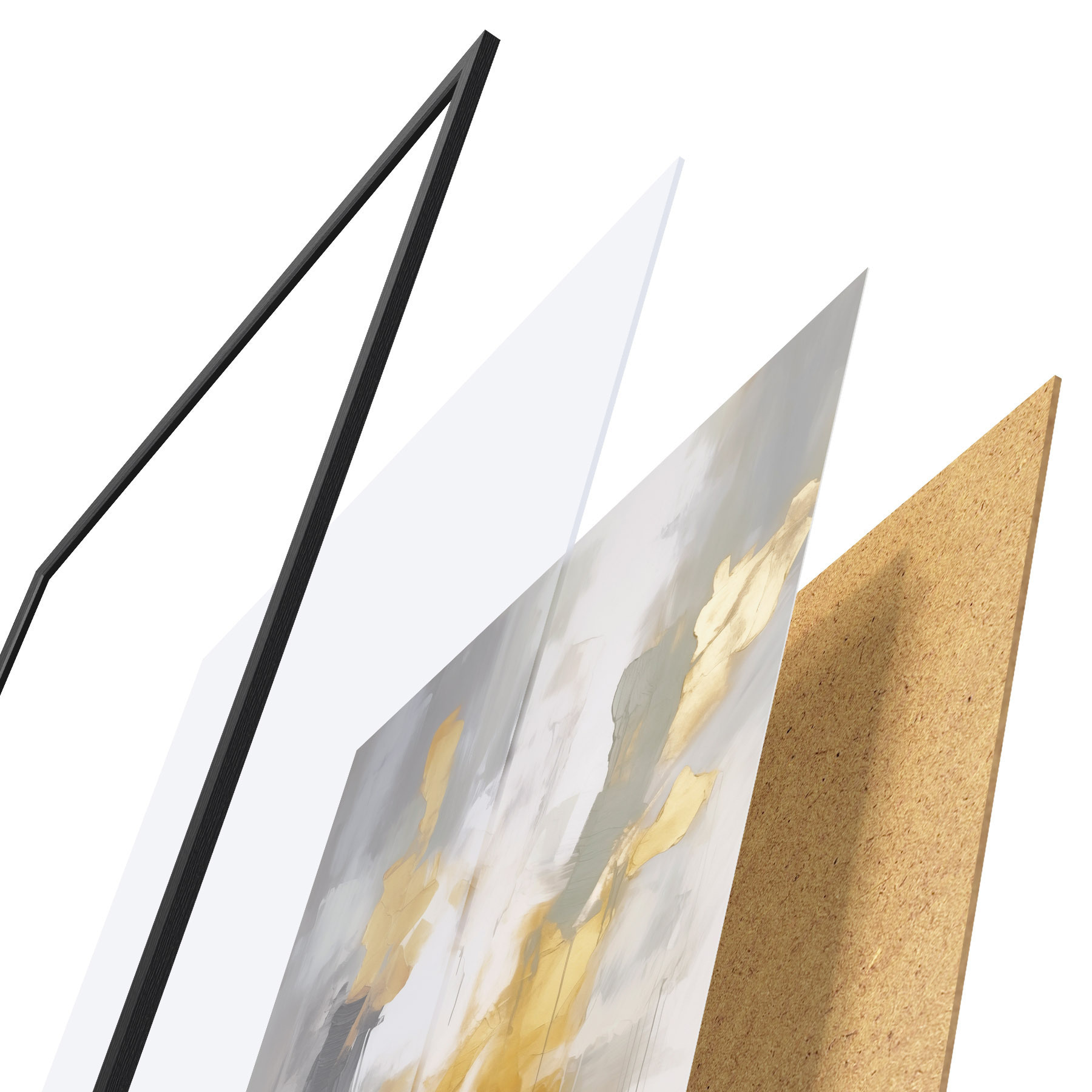 Le poster se compose d'un cadre, d'un plexiglas, d'une image imprimée et d'un support en aggloméré. Le poster peut être immédiatement accroché au mur grâce aux fixations au dos.