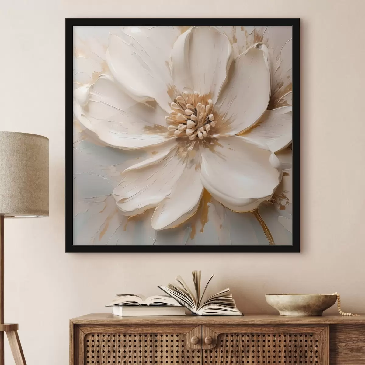 Affiche Fleur blanche texturée aux tons doux f48339