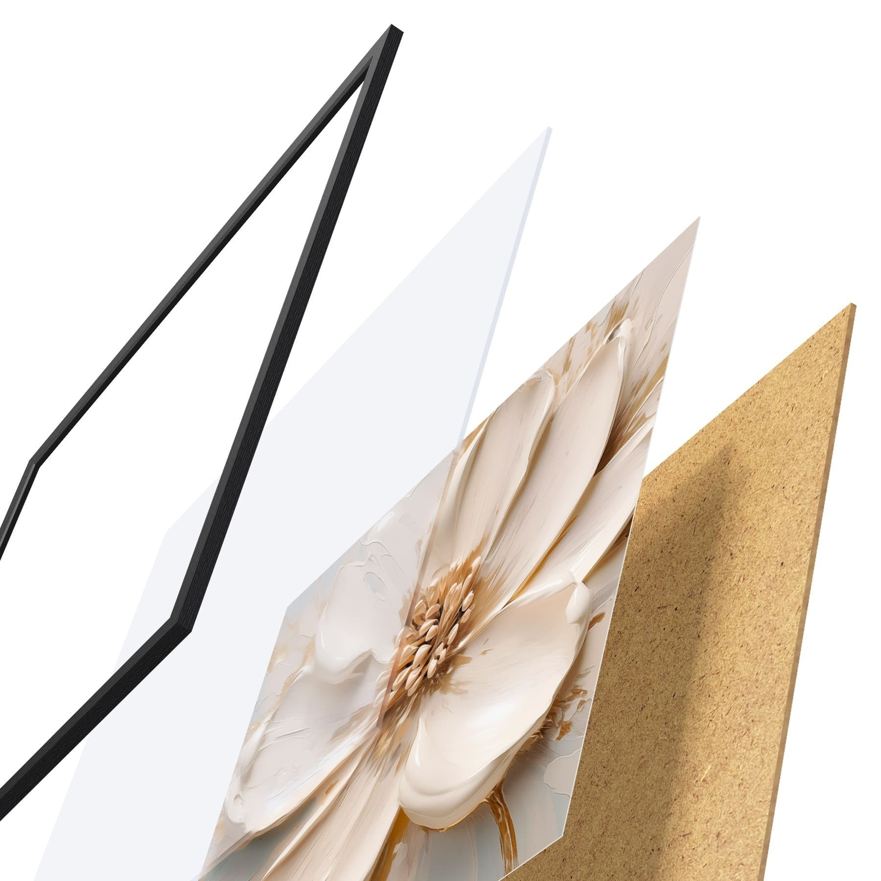 Le poster se compose d'un cadre, d'un plexiglas, d'une image imprimée et d'un support en aggloméré. Le poster peut être immédiatement accroché au mur grâce aux fixations au dos.