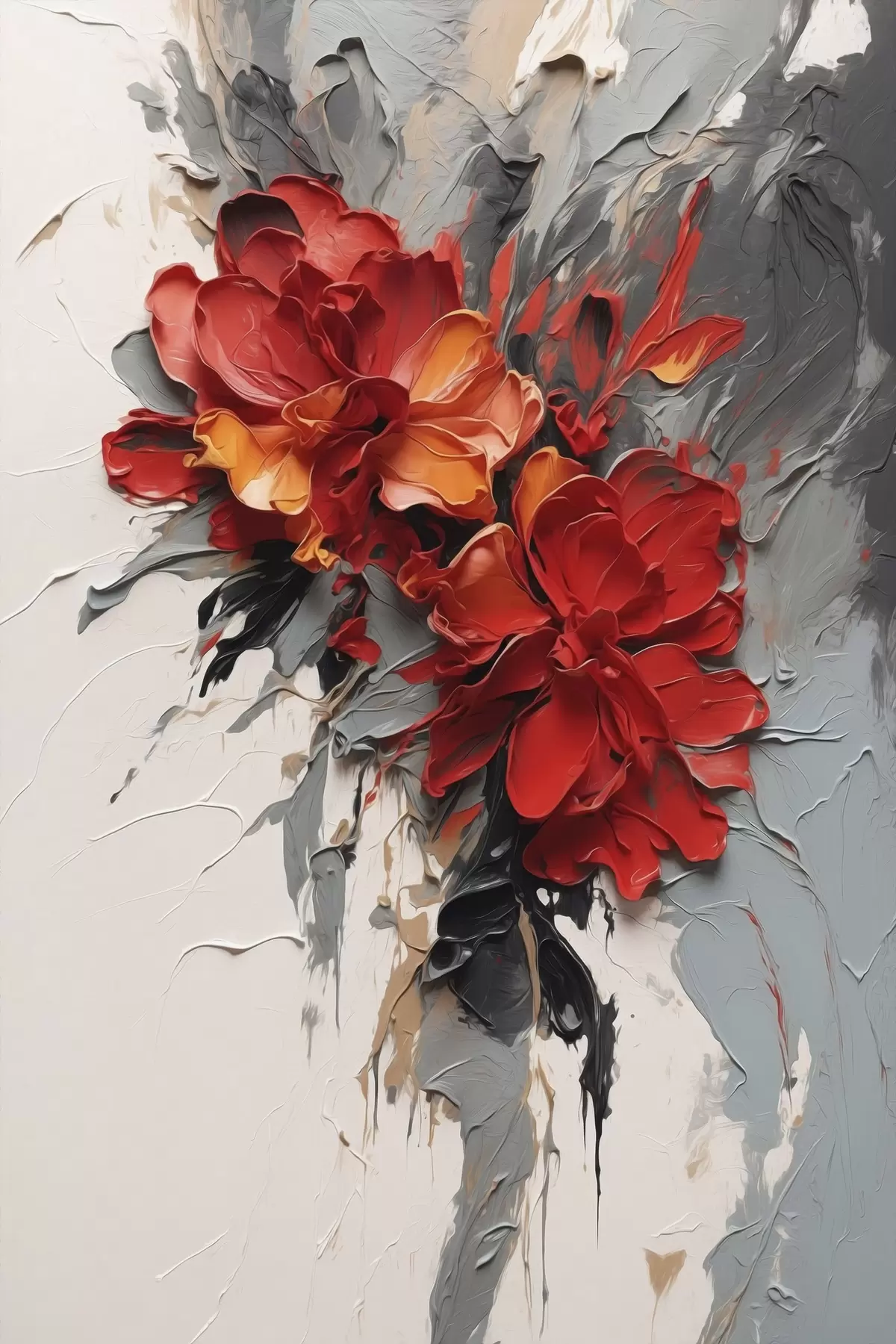 Affiche Des fleurs rouges aux traits texturés sur un fond clair Non f48365