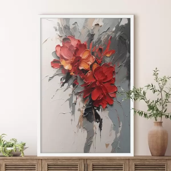 Affiche Des fleurs rouges aux traits texturés sur un fond clair f48365