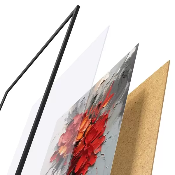Le poster se compose d'un cadre, d'un plexiglas, d'une image imprimée et d'un support en aggloméré. Le poster peut être immédiatement accroché au mur grâce aux fixations au dos.