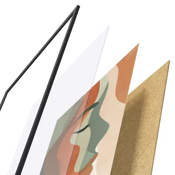 Le poster se compose d'un cadre, d'un plexiglas, d'une image imprimée et d'un support en aggloméré. Le poster peut être immédiatement accroché au mur grâce aux fixations au dos.