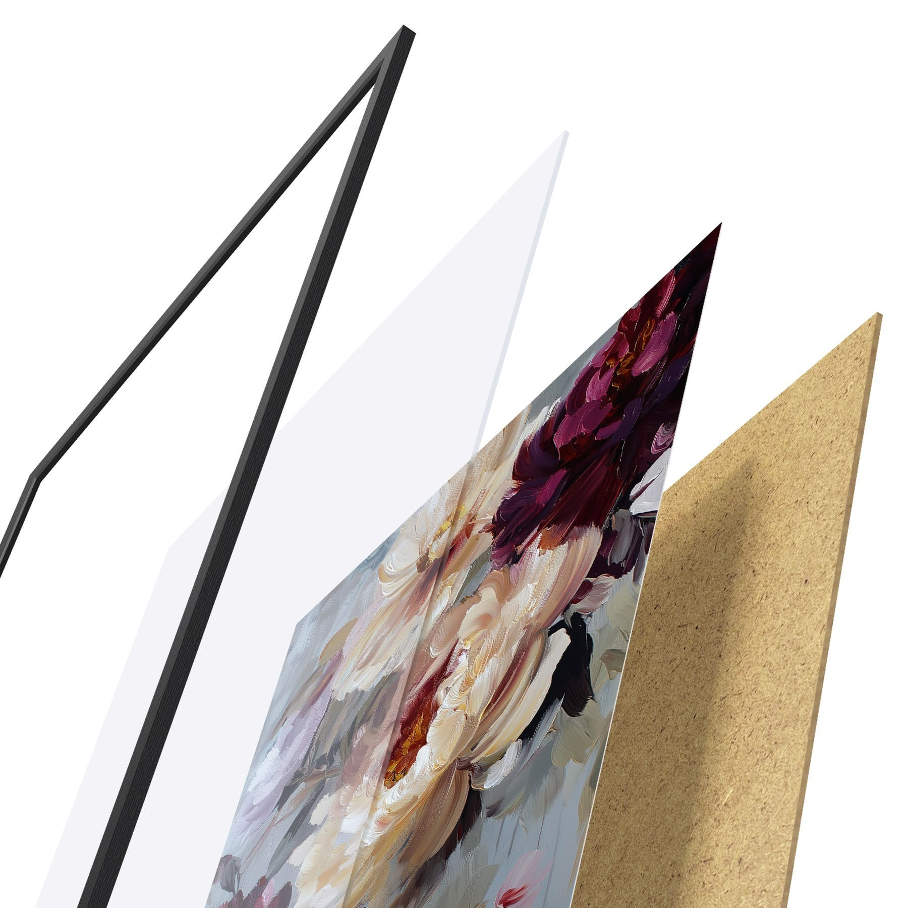 Le poster se compose d'un cadre, d'un plexiglas, d'une image imprimée et d'un support en aggloméré. Le poster peut être immédiatement accroché au mur grâce aux fixations au dos.