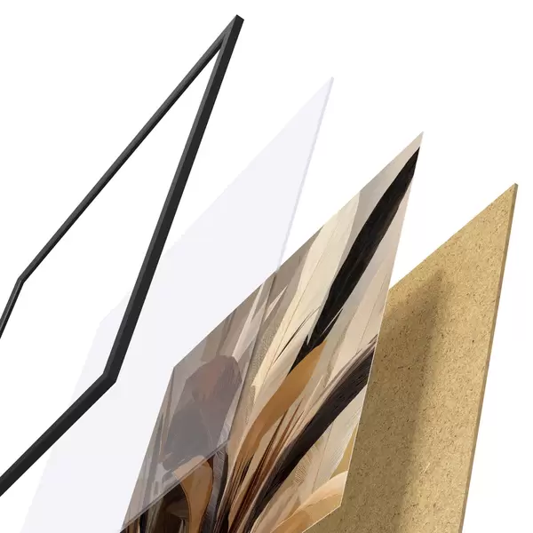 Le poster se compose d'un cadre, d'un plexiglas, d'une image imprimée et d'un support en aggloméré. Le poster peut être immédiatement accroché au mur grâce aux fixations au dos.
