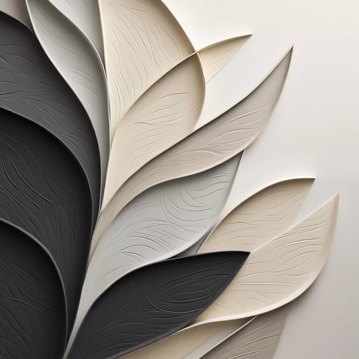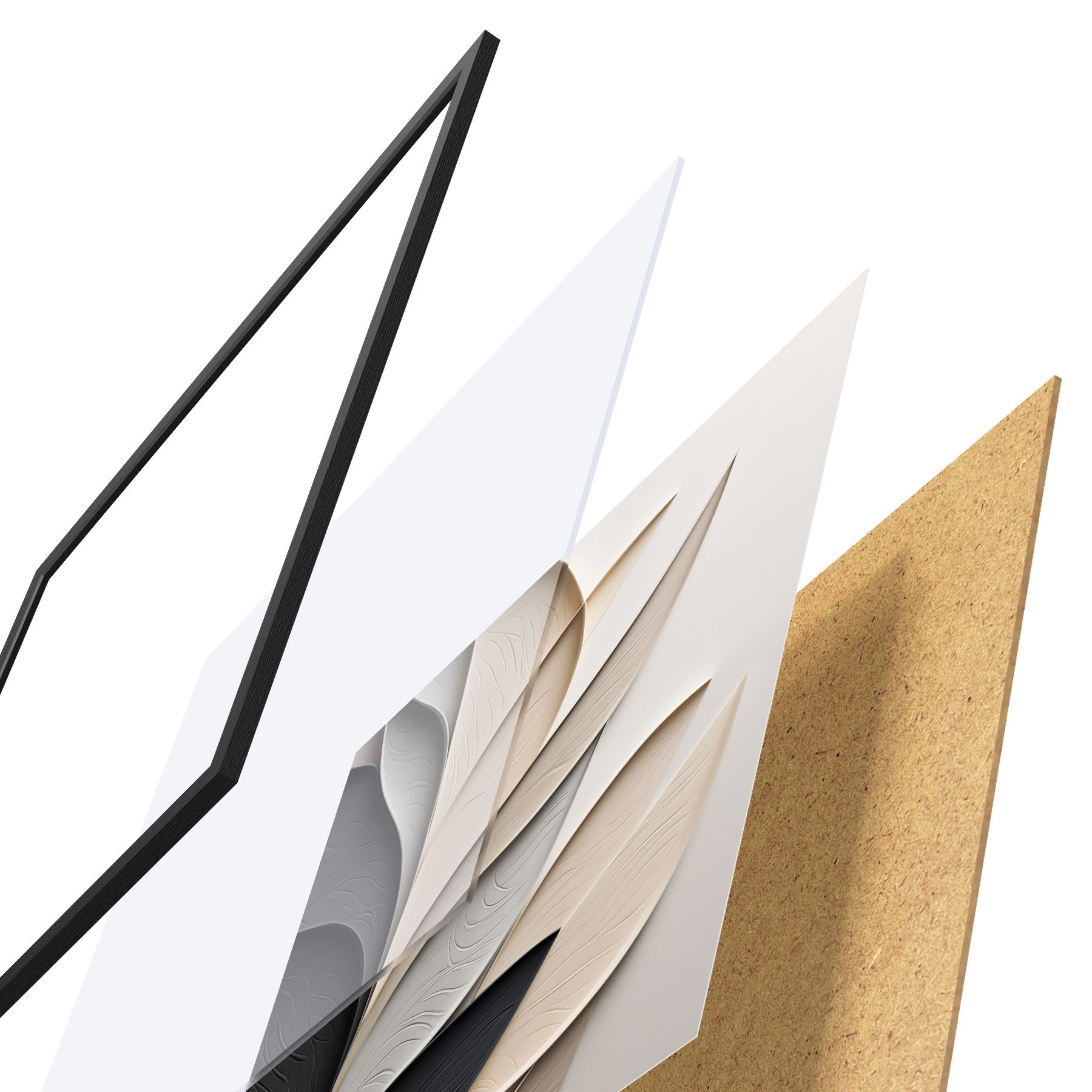 Affiche Composition abstraite de feuilles superposées, de formes courbes en noir, blanc et beige, œuvre d'art texturée Non f48382