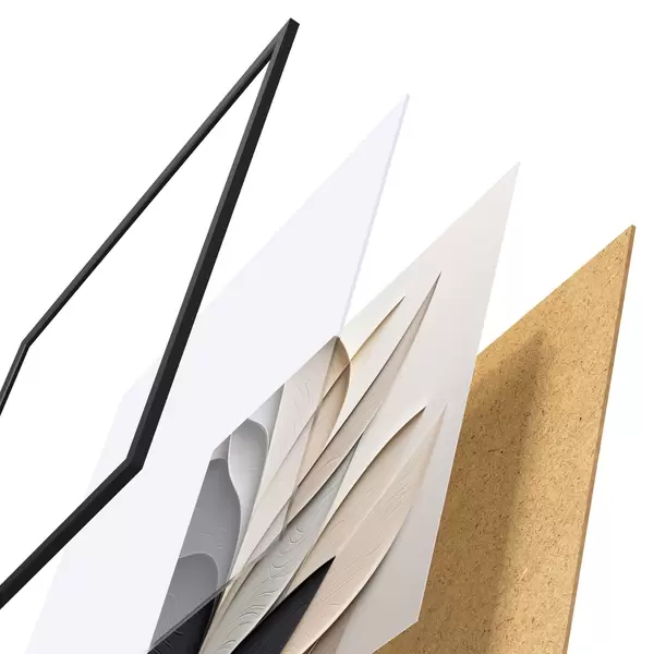 Le poster se compose d'un cadre, d'un plexiglas, d'une image imprimée et d'un support en aggloméré. Le poster peut être immédiatement accroché au mur grâce aux fixations au dos.